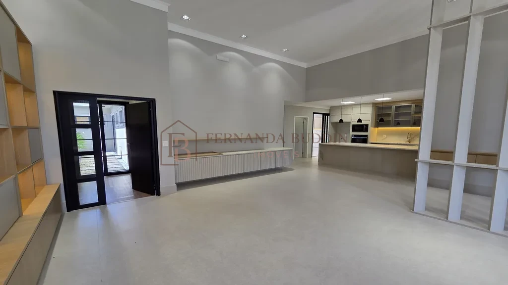 A casa possui 3 suítes e ambientes amplos. O pé-direito alto valoriza os espaços internos.
