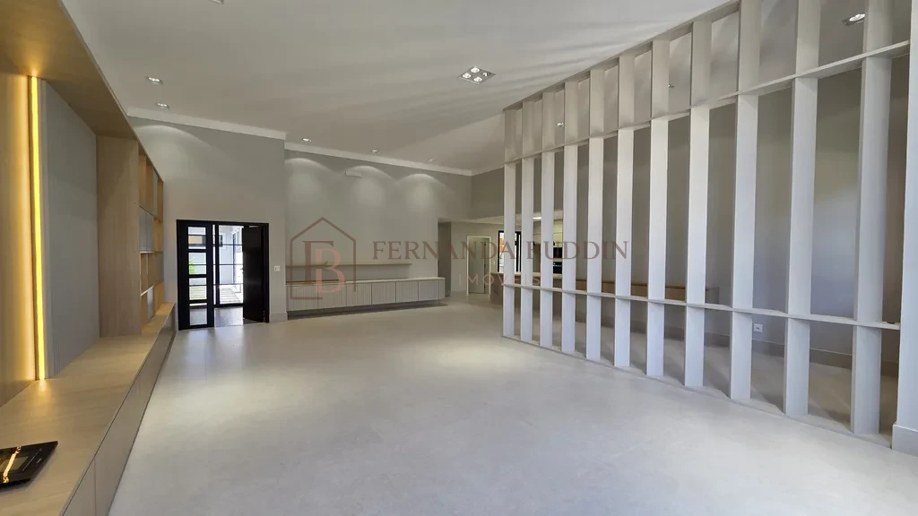 ✔️ Sala ampla com pé-direito alto e móveis planejados