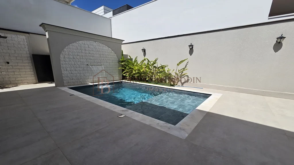 A piscina complementa o lazer e valoriza o imóvel. Além disso, o quintal com área verde traz mais bem-estar.
