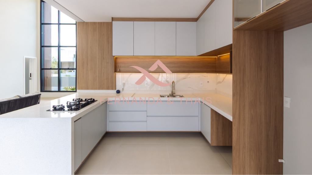 ✔️ Cozinha com quartzo branco Stelar, móveis planejados, cooktop, forno e microondas